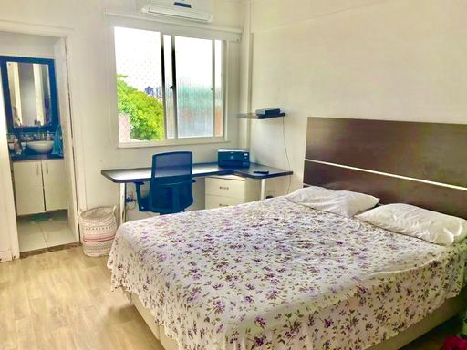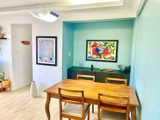 Apartamento semimobiliado, com armários em todos os quartos e mobiliário complementar na sala, oferecendo praticidade e organização. A configuração com duas suítes em uma metragem de 88m² é um diferencial relevante, proporcionando mais conforto e privacidade. O imóvel apresenta bom estado de conservação, com ambientes silenciosos e bem ventilados, ideal para quem busca um apartamento funcional em localização estratégica. A unidade é apta a financiamento, facilitando a aquisição.
