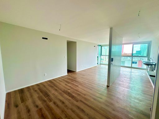 Apartamento com aproximadamente 106m² de área privativa, pronto para morar, com planta bem distribuída e ambientes funcionais. A área social conta com sala ampla para dois ambientes de estar e jantar, integrada à varanda gourmet com envidraçamento panorâmico, proporcionando maior conforto, iluminação natural e ventilação. O imóvel possui três quartos, sendo uma suíte, além de banheiro social e banheiro de serviço, totalizando três banheiros. A cozinha apresenta bom espaço de circulação e é complementada por área de serviço. A unidade dispõe ainda de duas vagas de garagem.
