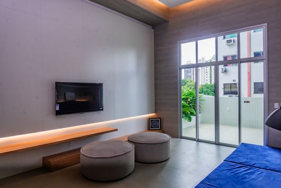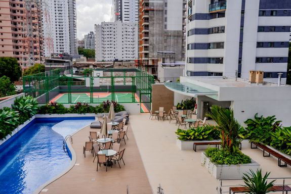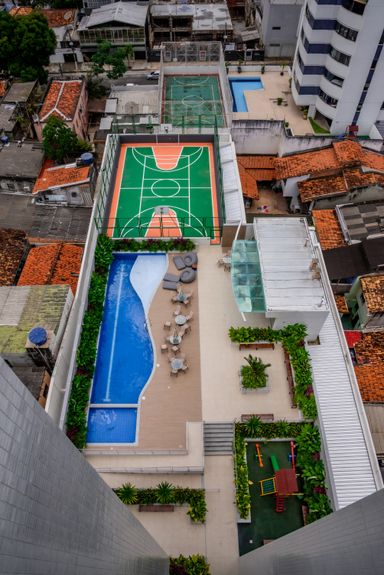 O Edifício Torre Lumiar oferece estrutura de lazer completa, com mais de 20 opções que atendem diferentes perfis, incluindo piscina, academia com aproximadamente 130m², espaço gourmet, salão de festas, brinquedoteca, lounge de jogos e área para cross training. As áreas comuns são mobiliadas e decoradas, seguindo o padrão da construtora, e o condomínio conta com portaria e segurança 24 horas, além de controle de acesso, proporcionando conforto, segurança e qualidade de vida aos moradores.
