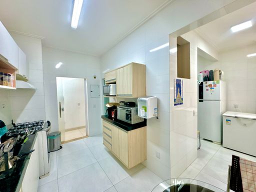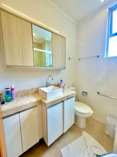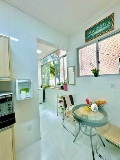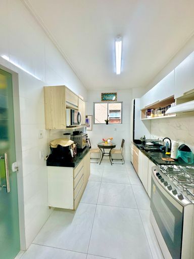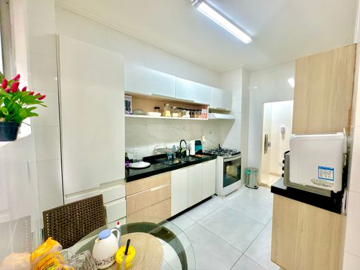 Apartamento com aproximadamente 144m² de área privativa, com planta ampla e bem distribuída, oferecendo ambientes confortáveis e funcionais. A área social conta com sala de estar e jantar integradas, criando um ambiente espaçoso e agradável para convivência. O imóvel possui três quartos, sendo uma suíte, além de banheiro social, totalizando três banheiros considerando também o banheiro de serviço. A cozinha apresenta bom espaço de circulação e é complementada por área de serviço independente, dependência completa de empregada e depósito, proporcionando praticidade na organização do dia a dia. Os ambientes são bem iluminados e extremamente ventilados, favorecendo conforto térmico e uma sensação constante de amplitude.
