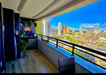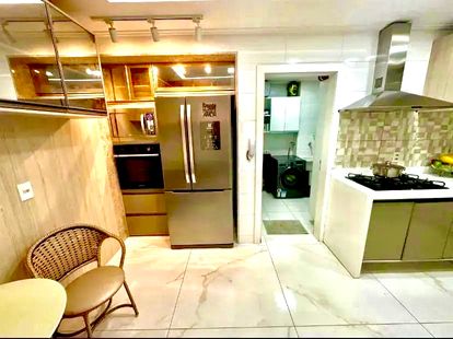 Apartamento com aproximadamente 106m² de área privativa, localizado em andar alto e com posição nascente, garantindo excelente ventilação e conforto térmico. A planta é bem distribuída, com sala ampla em “L” para dois ambientes (estar e jantar), integrada à sacada gourmet com churrasqueira, criando um espaço ideal para receber e conviver. O imóvel conta com três quartos, sendo duas suítes, além de banheiro social. A cozinha é funcional, equipada com armários, e integrada à área de serviço. Os ambientes possuem bom aproveitamento de espaço, com piso em porcelanato e ótima iluminação natural. A unidade dispõe ainda de duas vagas de garagem.
