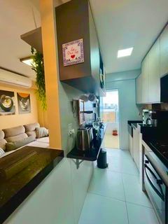Este apartamento mobiliado, com 71m², foi planejado para proporcionar bem-estar e funcionalidade. Possui sala de estar e jantar integradas à sacada com fechamento em vidro, cozinha americana com área de serviço e acesso à sacada, três dormitórios, sendo uma suíte, além de um escritório perfeitamente adaptado para o dia a dia. A unidade está localizada em andar alto, posição nascente e conta com duas vagas de garagem privativas.
