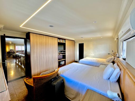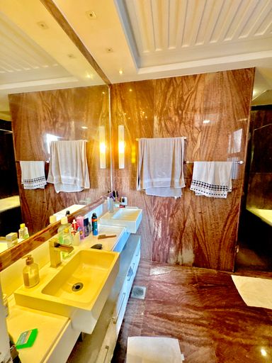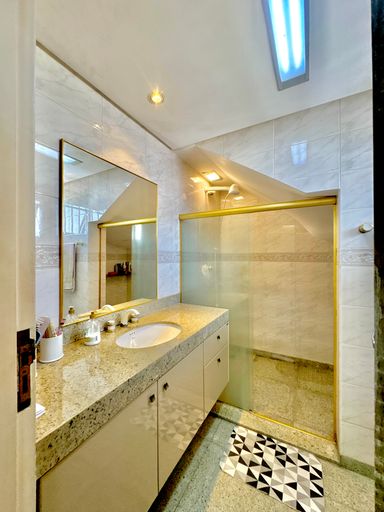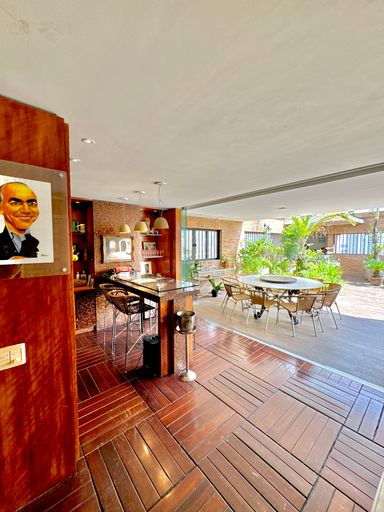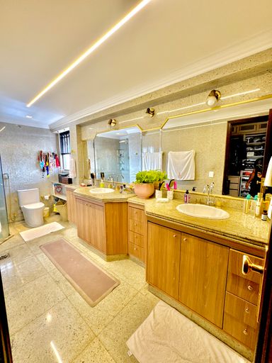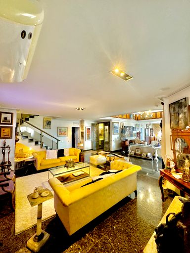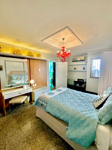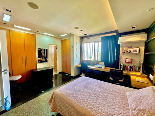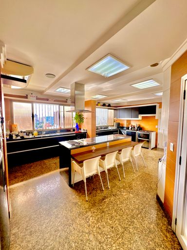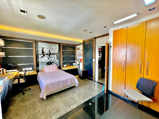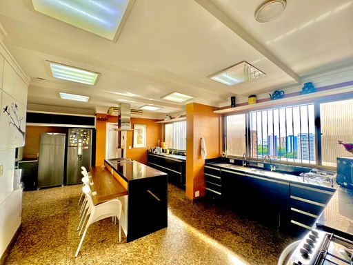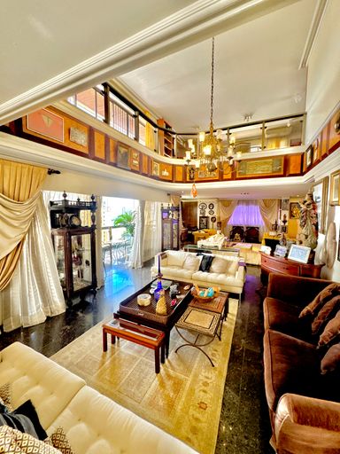 Com impressionantes 700m² de área privativa distribuídos em dois pavimentos, esta cobertura duplex entrega uma experiência residencial única, marcada por amplitude, sofisticação e excelente ventilação. No primeiro pavimento, o imóvel conta com um elegante hall de entrada, amplas salas de estar integradas, sala de jantar com sacada, lavabo, escritório, depósito e três suítes generosas, todas com armários embutidos, sendo duas delas com closet. A cozinha é ampla, totalmente montada, equipada com ilha central, além de área de serviço funcional e dependência completa.