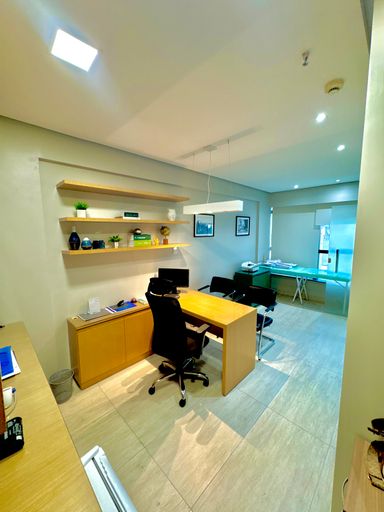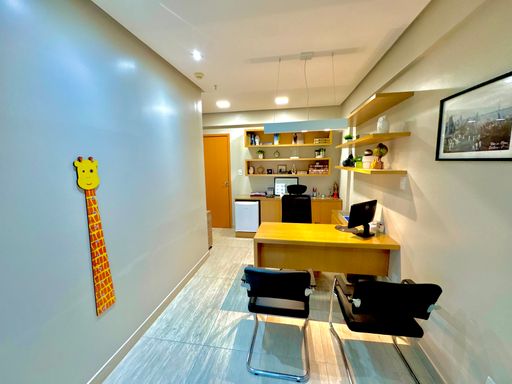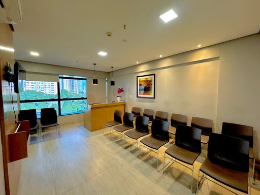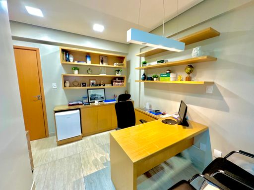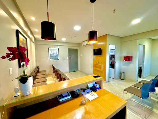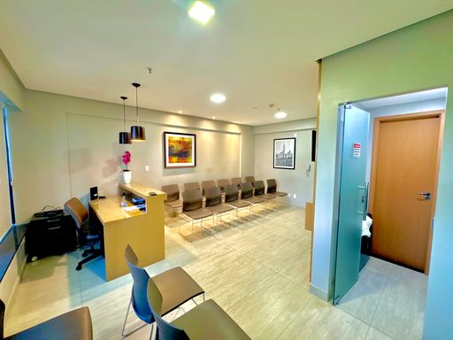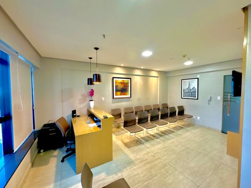 Conjunto comercial composto por duas salas integradas, totalizando aproximadamente 60m² de área privativa, distribuídas de forma funcional e prontas para uso imediato. O espaço conta com recepção estruturada com 22 cadeiras, duas salas individuais destinadas a atendimento ou escritórios, dois banheiros e uma copa equipada com armários. O ambiente possui ar-condicionado instalado em todos os espaços, além de frigobar, micro-ondas, bebedouro, mesa de recepção, luminárias e elementos de decoração que contribuem para um ambiente corporativo organizado e confortável. O conjunto dispõe ainda de duas vagas de garagem, garantindo maior comodidade para proprietários, colaboradores ou clientes.