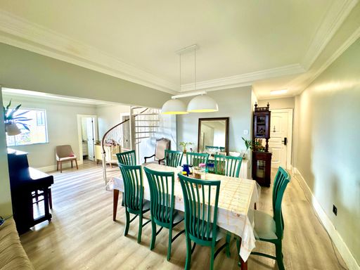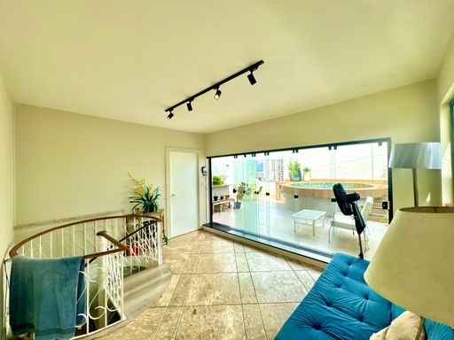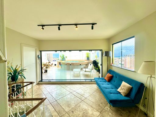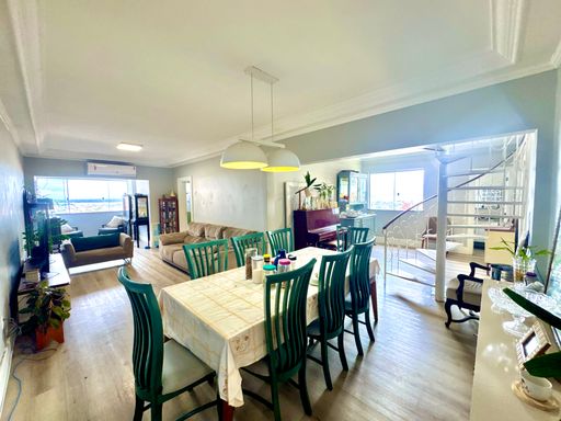 Cobertura duplex com aproximadamente 230m² de área privativa, com posição nascente, proporcionando excelente ventilação e conforto térmico. O imóvel é distribuído em dois pavimentos, com ambientes amplos e bem definidos:
