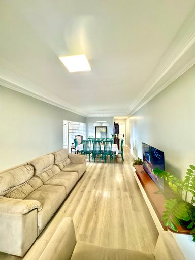 Sala de estar e jantar integradas, com excelente iluminação natural, cozinha espaçosa e funcional, área de serviço, 2 Quartos e 3 Banheiros.